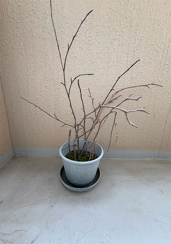 以前の投稿[秋の準備編]内でもお伝えしたとおり、昨年は父の遺した土地を売却するタイミングで、そこに咲いていた花や木の枝を持ち帰っていました。すでに時期が過ぎたもの、枯れて落ちてしまったものが中心なので、再生できるかどうかは今年が初めての挑戦となります。