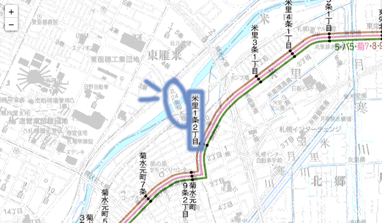 - 桜を見ながら走行していた橋は「北24条桜大橋」という名前で、比較的新しい橋らしい