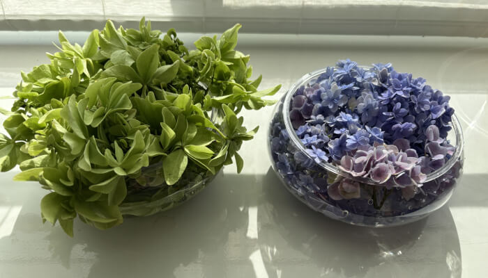 お花を刈った後は、浅めのプランターに水を張って生け、しばらく愛でました。