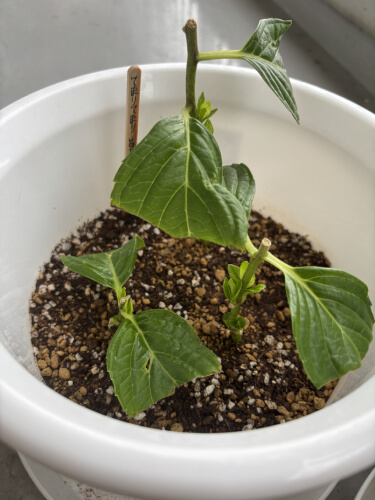 その頃必死に調べていたキーワードは「あじさい/鉢植え/株分け」だったのですが、ヒットしたのは「挿し木」という耳慣れない言葉。