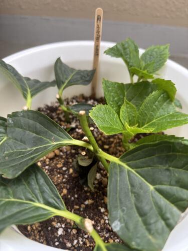「てまりまてり」「マジカルレボリューション」「ハイドランジア・マジカルレボリューション」「月うさぎ」の全てで、挿し穂を作りました。