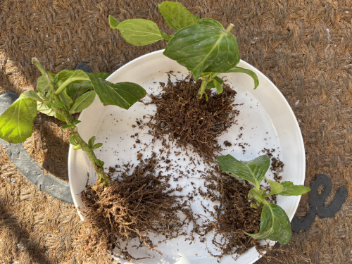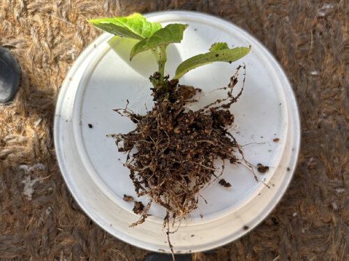 鉢から取り出し、根が育っているかどうかを確認します。