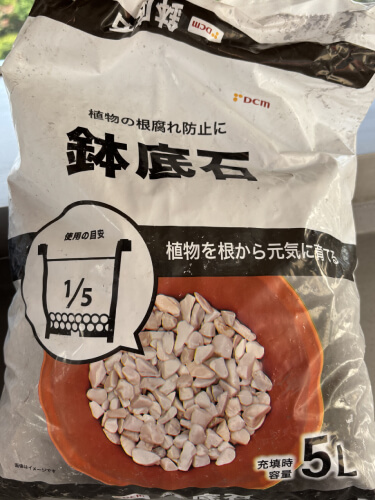 鉢底石は持ち合わせが足りなかったので、ホームセンターで買い足しました。